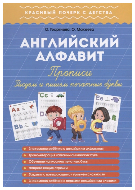 Данная пропись предназначена для ознакомления детей старшего дошкольного и младшего школьного возраста с печатными буквами английского алфавита. Задания расположены в порядке увеличения сложности: от обведения образцов по контуру до самостоятельного написания букв. В издании также представлены изображения с транслитерацией и подписями, благодаря которым ребенок сможет выучить буквы и первые слова на иностранном языке. Пропись может быть использована специалистами детских садов, центров раннего развития, школ, а также родителями для занятий в домашних условиях.