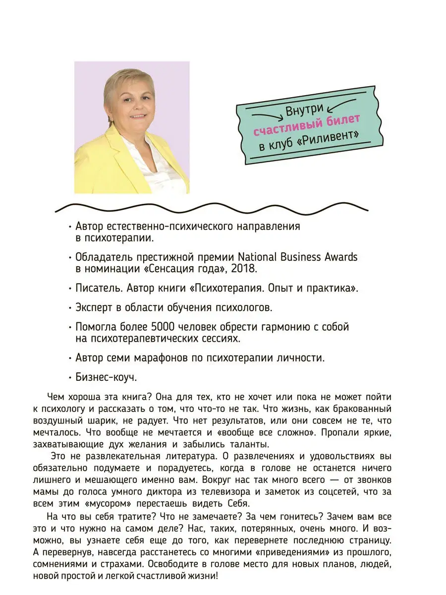 Чем хороша эта книга по психологии? Она для тех, кто не хочет или пока не может пойти к психологу и рассказать о том, что что-то не так. Книга по психологии для женщин от автора Янышева Вера не о том, как заработать миллион, моментально достичь процветания в бизнесе и очаровать всех людей на пару километров вокруг. Автор книги полезной психологии подчеркивает потребность женщины работать над своей целостностью и развивать различные стороны своей натуры. Книга психологии личности предлагает глубокую и проницательную модель женской психологии. Автор книги "Чистый мозг. Что будет, если выгнать всех тараканов и влюбиться в мечты" пишет о том, что останавливаться не обязательно в любом возрасте, а делать всегда по-своему - добродетель, ведущая напрямик к счастью. Если вы хотите выбраться из состояния "всё хорошо, но ничего хорошего" и сделать свою жизнь такой, какую раньше не могли даже вообразить, скорее переворачивайте страницу и читайте.
