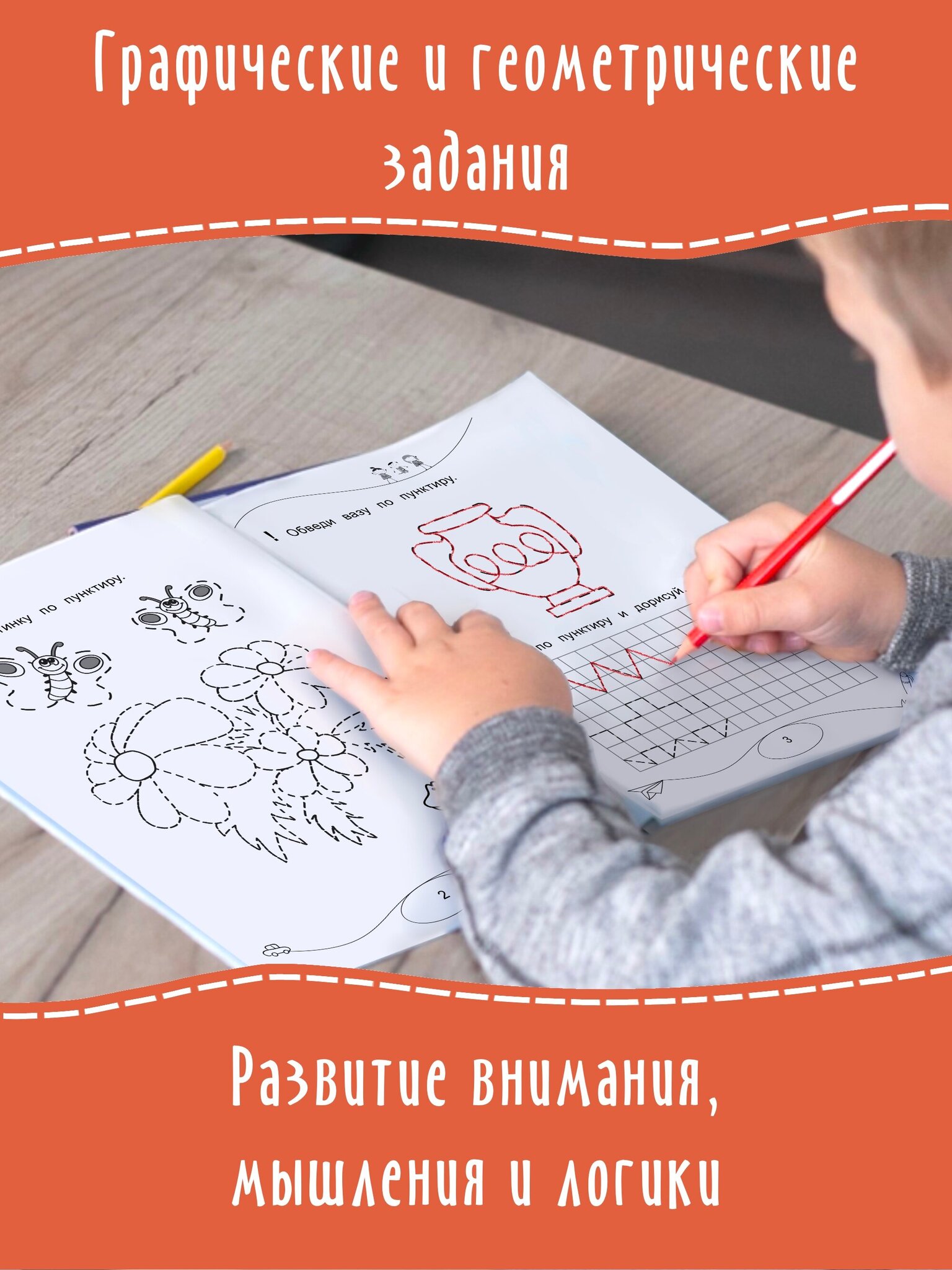 Как развить внимание и усидчивость ребенка? Конечно используя прописи с заданиями нашего бренда. Прописи для малышей помогают обучить основам письма, покажут как правильно ставить руку, обводить контур, рисовать геометрические фигуры и элементы. Книга для ребенка представляет собой прописи обвожу, штрихую и рисую, в них есть рисунки-раскраски, задания на обведение по пунктиру, штриховку, дорисовку предметов и другие интересные задания для малышей. Разлиновка тетради помогает в написании букв с правильным интервалом, наклоном, необходимой высотой. Сначала ребенку нужно помогать, готовить руку к письму и направлять ее. Уже после того, как ребенок научится самоконтролю, можно доверить ему выполнение упражнения самому. Обучающие прописи с заданиями для дошкольников красочно оформлены и очень удобны в работе. А упражнения на логику, внимание и мышление внесут интерес в занятия чистописанием. Прекрасный подарок для группы детей.