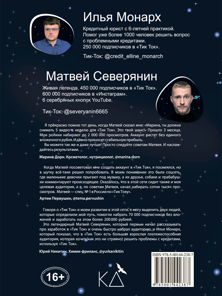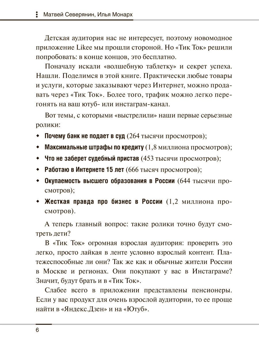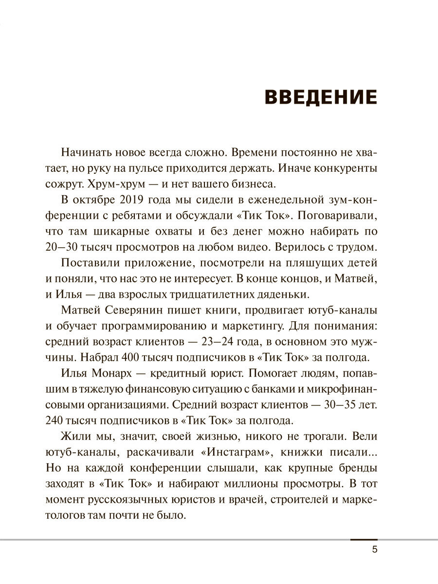 Практически любые товары и услуги, которые заказывают через Интернет, можно продавать через Тик Ток. Покорить Тик Ток будет намного легче, если опираться на знания опытных тиктокеров, маркетологов и PR-специалистов. В помощь приходит данная нехудожественная книга бренда 1000 Бестселлеров, в которой авторы учат выступать на публике без страха, рассказывают почему человеку важно работать на себя и какие каналы заработка доступны в цифровом пространстве. Формируется базовое понимание, что делать внутри Тик Тока, насколько полезно и эффективно продвигать в нем свой бизнес. Сборник о распаковке личности написан доступным языком, для начинающих предпринимателей - прекрасный мотив для вдохновения. Также в актуальной литературе приводятся краткие инструкции о том, как создавать интересный контент, найти свою нишу и зрителя, какие фишки и лайфхаки используют знаменитые тиктокеры. Книга отпечатана на офсетной бумаге в твердом переплете и подойдет в качестве подарка коллеге, подруге, другу.