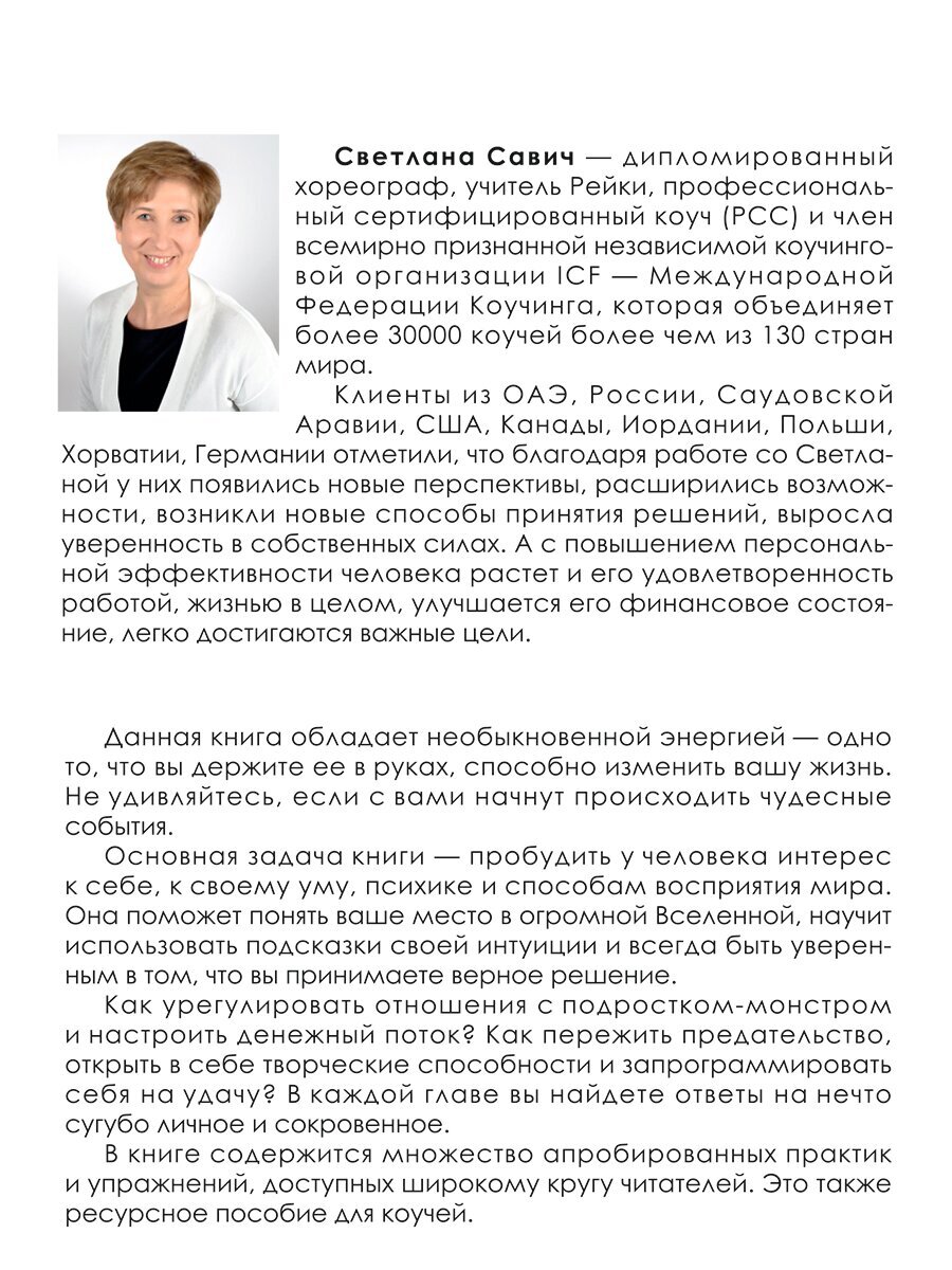 Процесс познания себя, личностный рост, самопознание и саморазвитие никогда не кончается и он необычайно увлекателен. Энергия человека поистине безгранична. В каждом таится огромная сила, раскрыть которую вы можете, соединившись со своими внутренними ресурсами, со своими ангелами. Данная книга обладает необыкновенной силой - одно то, что вы держите ее в руках, способно изменить вашу жизнь. Не удивляйтесь, если с вами начнут происходить чудесные события. Основная задача книги - пробудить у человека интерес к себе, к своему уму, психике и способам восприятия мира. Она поможет понять ваше место в огромной Вселенной, научит использовать подсказки своей интуиции и всегда быть уверенным в том, что вы принимаете верное решение. Как урегулировать отношения с подростком и настроить денежный поток. Как пережить предательство, открыть в себе творческие способности и запрограммировать себя на удачу. В каждой главе вы найдете ответы на нечто сугубо личное и сокровенное. В книге содержится множество апробированных практик и упражнений, доступных широкому кругу читателей. Это также ресурсное пособие для коучей.