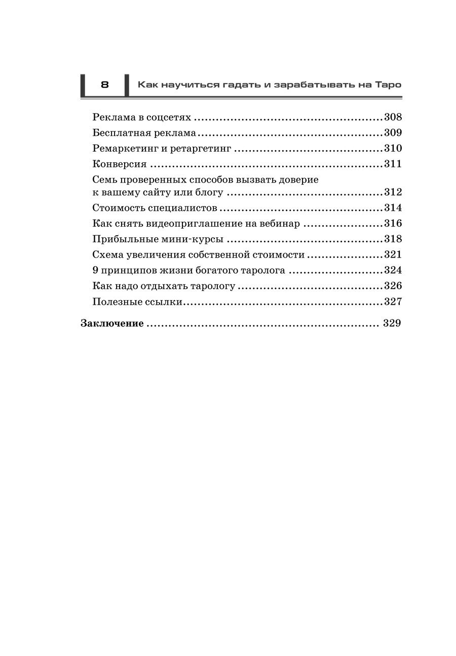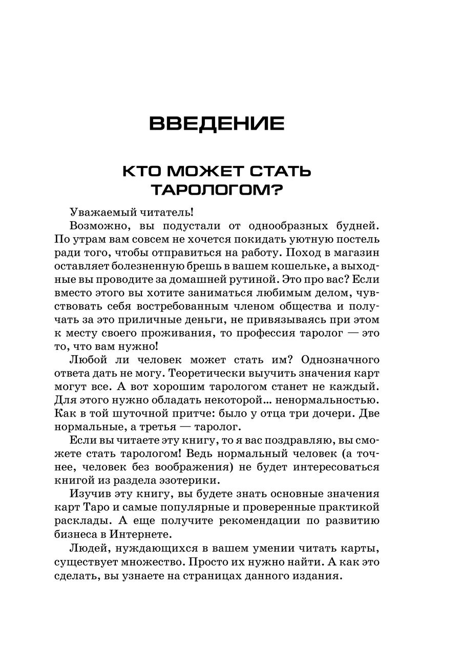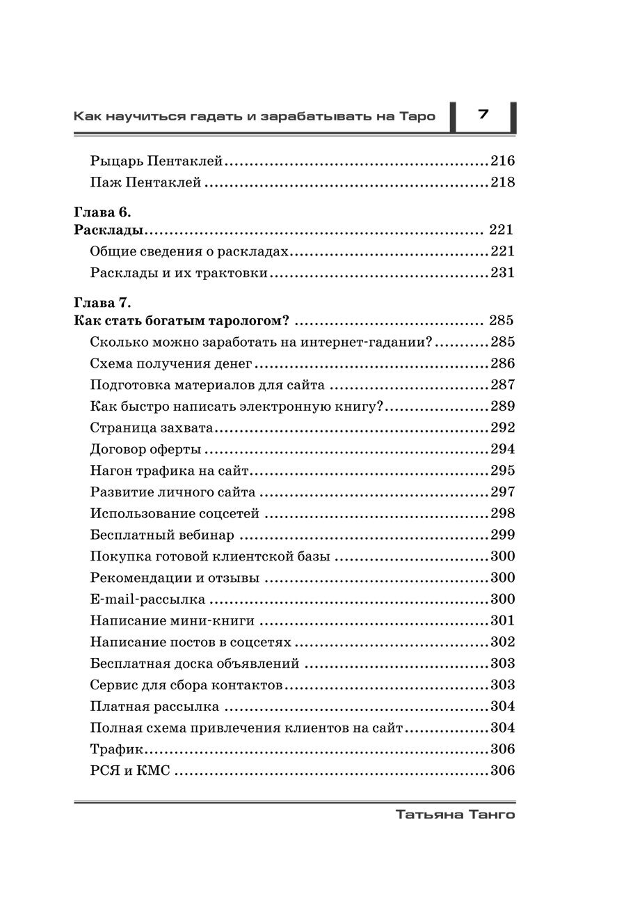 Если вы хотите сделать увлечение эзотерикой своей профессией, то эта книга для вас. Татьяна Танго соединила под одной обложкой древнейшее искусство предсказаний на картах Таро и современные знания в области информационного маркетинга. С помощью этой книги вы освоите множество классических раскладов, научитесь интерпретировать сочетания карт и применять их в повседневной жизни. А главное, вы узнаете, как создать и раскрутить сайт для любителей предсказаний, увести целевую аудиторию у конкурентов, стать экспертом Таро, научиться проводить вебинары и, в конце концов, стать обеспеченным и уважаемым членом общества.