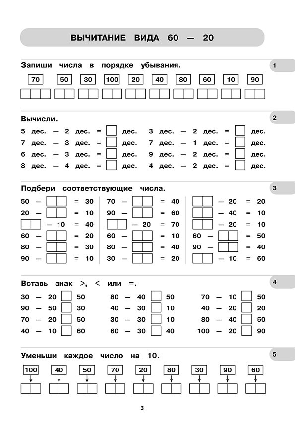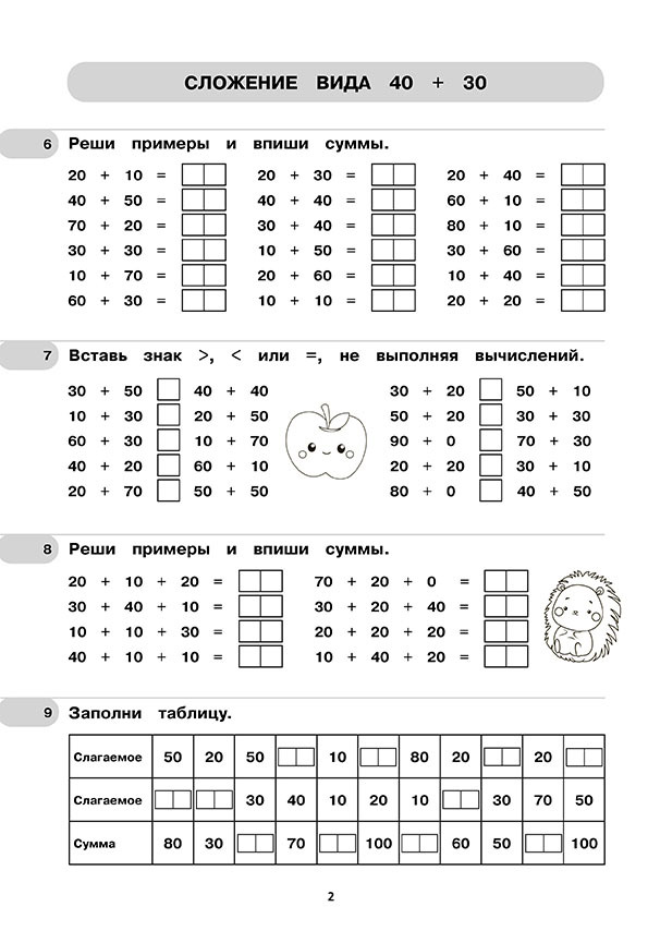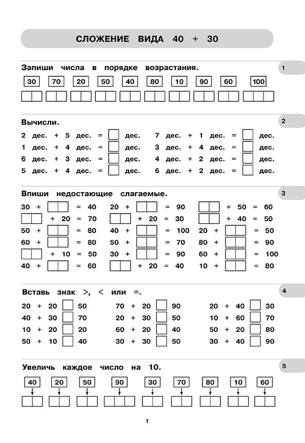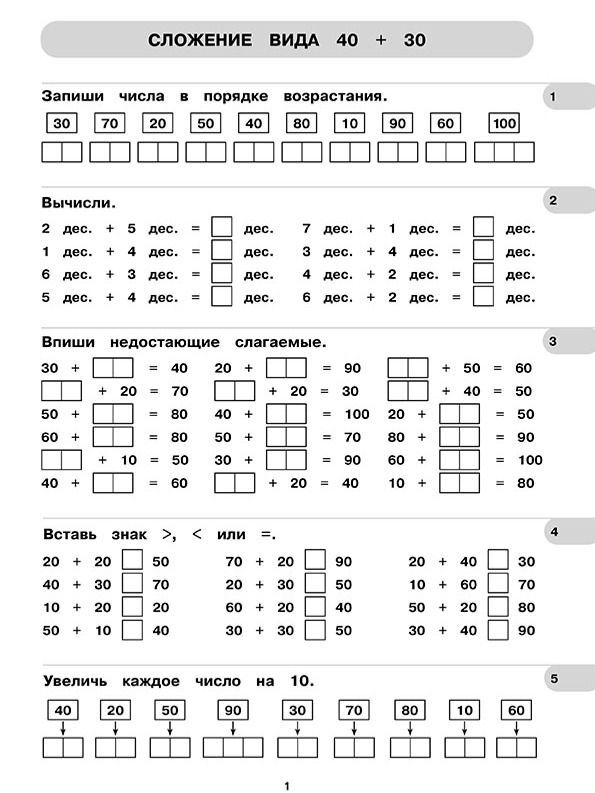 Родители первоклассников должны помнить, что проще всего обучать ребенка через учебные пособия и сборники задач. Мы подготовили тренажер по математике для дошкольников и учеников 1 класса , где собраны приемы письменного сложения и вычитания в пределах 100 без перехода через разряд для формирования навыков счета. Важно знать, что примеры и задачи развивают память, ясность и быстроту мысли, сообразительность, умение отыскивать решения для поставленной цели, уверенность в своих силах, помогают школьникам полноценно усваивать программу курса математики в 1-4 классах. Развивающая детская книга предназначена для совместной работы взрослого и ребенка обучение счету и ориентирована на реальные возможности детей от 6 лет. Но тренажеры удобного формата А4 с мягкой обложкой могут быть применены к одаренным и развитым детям, которые проявляют интерес к буквам и цифрам уже с 4-5 лет.