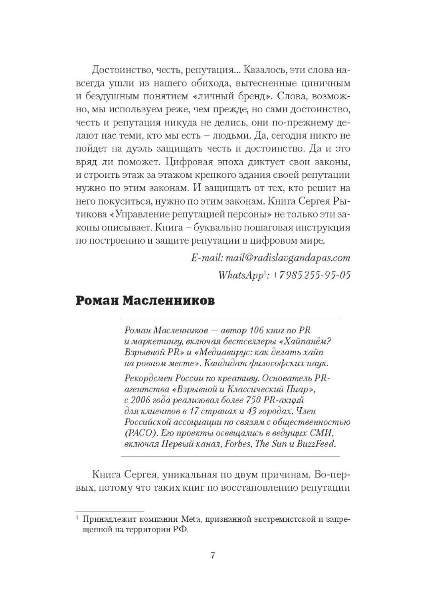 Эта книга — самое подробное руководство по созданию и восстановлению репутации персоны, must-have для представителей бизнеса, блогеров, политиков, спикеров, экспертов и тех, кому не всё равно, что о них думают и пишут в интернете. Издание полезно тем, кто понимает, что репутация — это валюта современного мира, в которую нужно инвестировать постоянно.